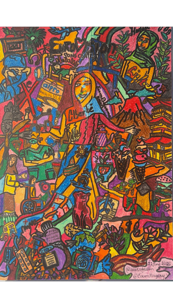 De inhoud van eetstoornisgedachten heeft vaak niets te maken met de werkelijkheid. Om mentaal veerkrachtig te blijven tijdens mijn klinische opname ben ik door mijn oude behandelaar geadviseerd om de opname te zien als een soort stage (gezien mijn opleiding). Ik begon me meer te verdiepen in wetenschappelijk onderzoek naar eetstoornissen. Soms hielp het om mijn eetstoornis tegen te spreken. Hierdoor heb ik in mijn kunstwerk (Tussen twee culturen met een eetstoornis) de logo’s van Google Scholar, PubMed en ResearchGate gezet.