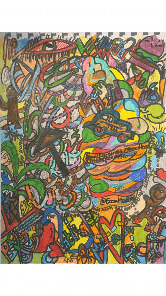 Door die gedachte toe te passen in mijn kunstwerken leer ik om fouten te zien als onderdeel van vooruitgang. Ik zie mijn herstel als een van mijn tekeningen; elke stap en ieder moment (mooi of moeilijk) draagt bij aan een groter plaatje, namelijk herstel en zelfontwikkeling. Ik vind mijn tekeningen niet mooi of lelijk. Als het lukt, probeer ik vooral de moeite die ik erin steek te bewonderen zonder oordeel.