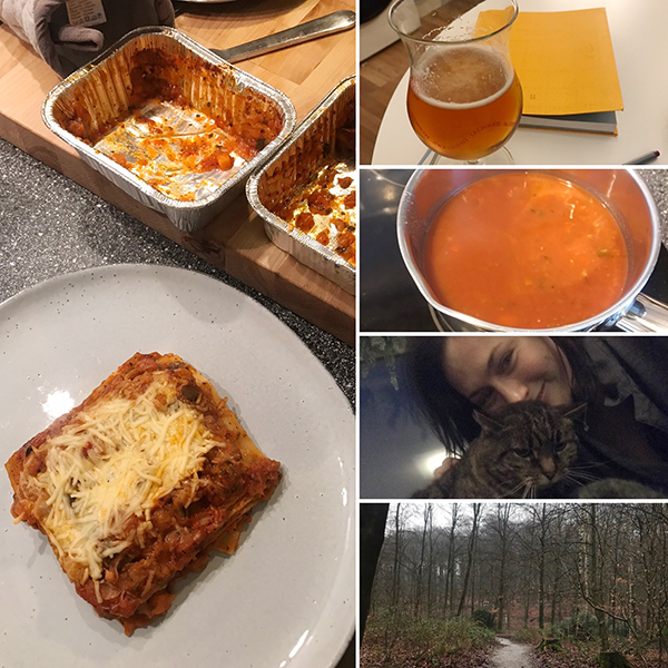 In de middag kookte ik voor mezelf wéér spaghetti – over comfortfood gesproken – en probeerde wat te lezen.