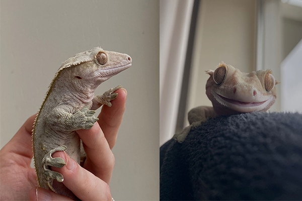 Ik verklapte het al in de intro, maar niet alleen wij, ook onze wimpergekko Ruto krijgt een nieuw huisje. We hebben hem in 2017 in huis gehaald – wat vliegt de tijd! Hij was toen zo klein! Onze vingers waren groter. Inmiddels is hij echt wel een chonker geworden. Mijn vriend kende iemand die graag een reptiel zou willen en er ook al veel research naar heeft gedaan. Hij wil zelf het terrarium bio-active maken (dus met levende planten, een heel ecosysteem). Ruto doet het supergoed, maar ik merk dat het me minder goed lukt om goed voor alle dieren te zorgen dan ik zou willen, en hij verdient iemand die hem overlaad met liefde en goede zorg. Ook, met het oog op het nieuwe huis, was het al een beetje puzzelen waar we alle dieren een plekje zouden geven; we hebben naast de katten nog een baardagaam en twee luipaardgekko’s. Nou goed, ik merk dat ik me helemaal probeer te verantwoorden, maar ik weet dat het een juiste keuze is voor Ruto. Maar dat betekent niet dat het geen verdriet doet, natuurlijk. We kunnen hem in ieder geval af en toe bezoeken, dat is ook wel een fijn idee.