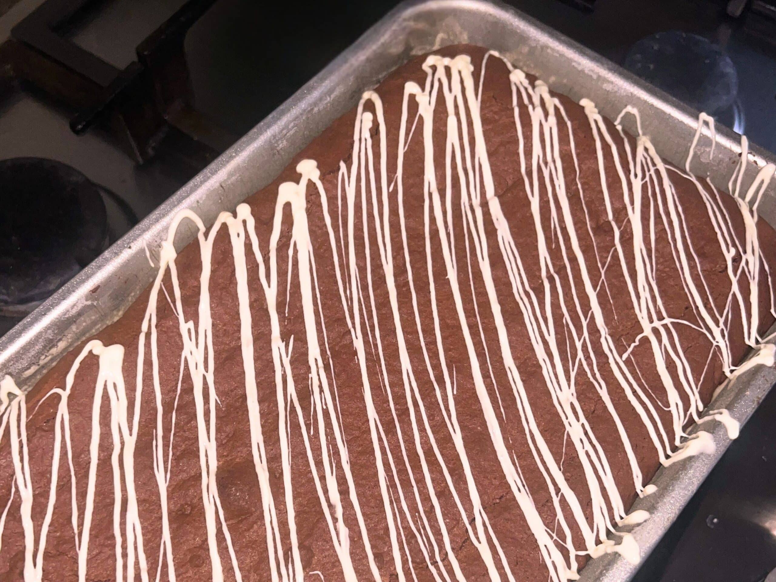 - Doe het beslag in de brownievorm en zet het voor 30-40 minuten in de oven.